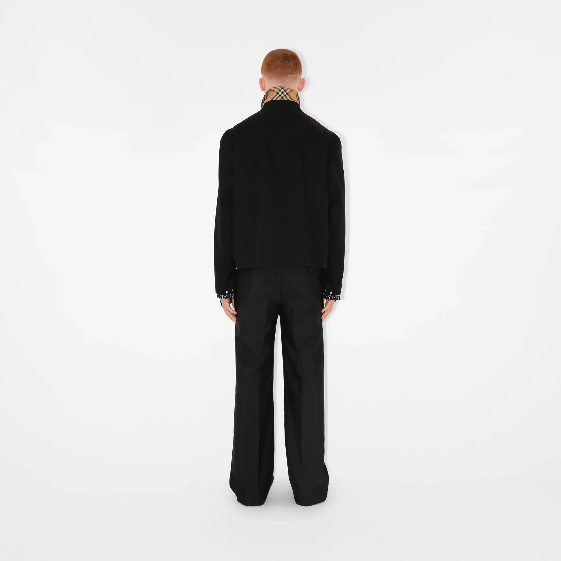 Le design est rehaussé par l'héritage de la Maison : la doublure intérieure et le dessous du col sont parés du motif intemporel Burberry Check, ajoutant un contraste subtil et reconnaissable. La veste est conçue pour la fonctionnalité, intégrant une fermeture zippée, des poches latérales à bouton-pression et des poignets ajustables. L'emblème Equestrian Knight Design est brodé discrètement sur la poitrine, signe de l'authenticité et de l'histoire de la marque.