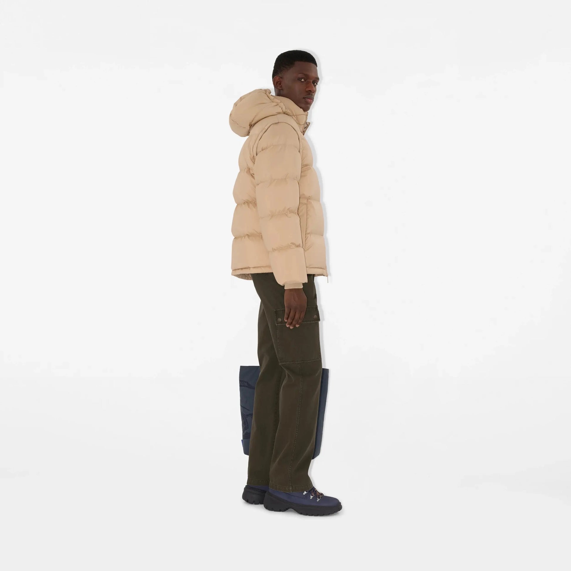 Cette doudoune incarne l'ingéniosité moderne de la Maison Burberry, offrant une modularité sans effort grâce à ses manches amovibles qui la transforment en gilet élégant. Arborant une coupe casual plus ample, elle est généreusement rembourrée d'un mélange premium de duvet d'oie et de fibres isolantes. La pièce se distingue par le motif Burberry Check emblématique qui tapisse le col montant et l'intérieur de la capuche, ajoutant une note d'héritage reconnaissable, complétée par l'application du cachet Knight sur la manche.