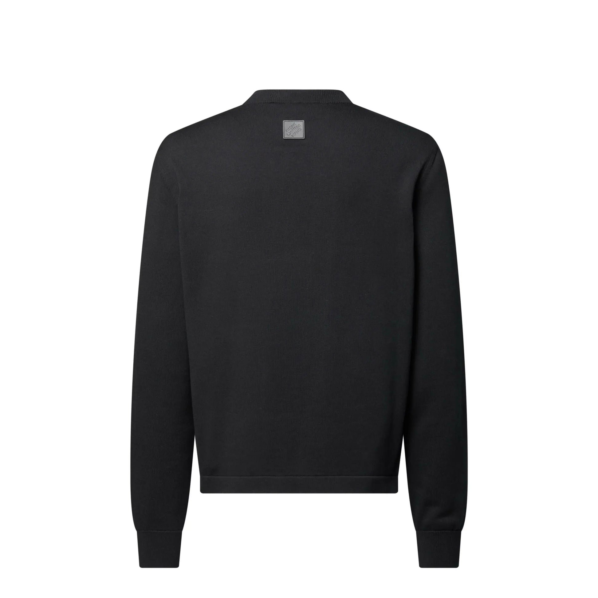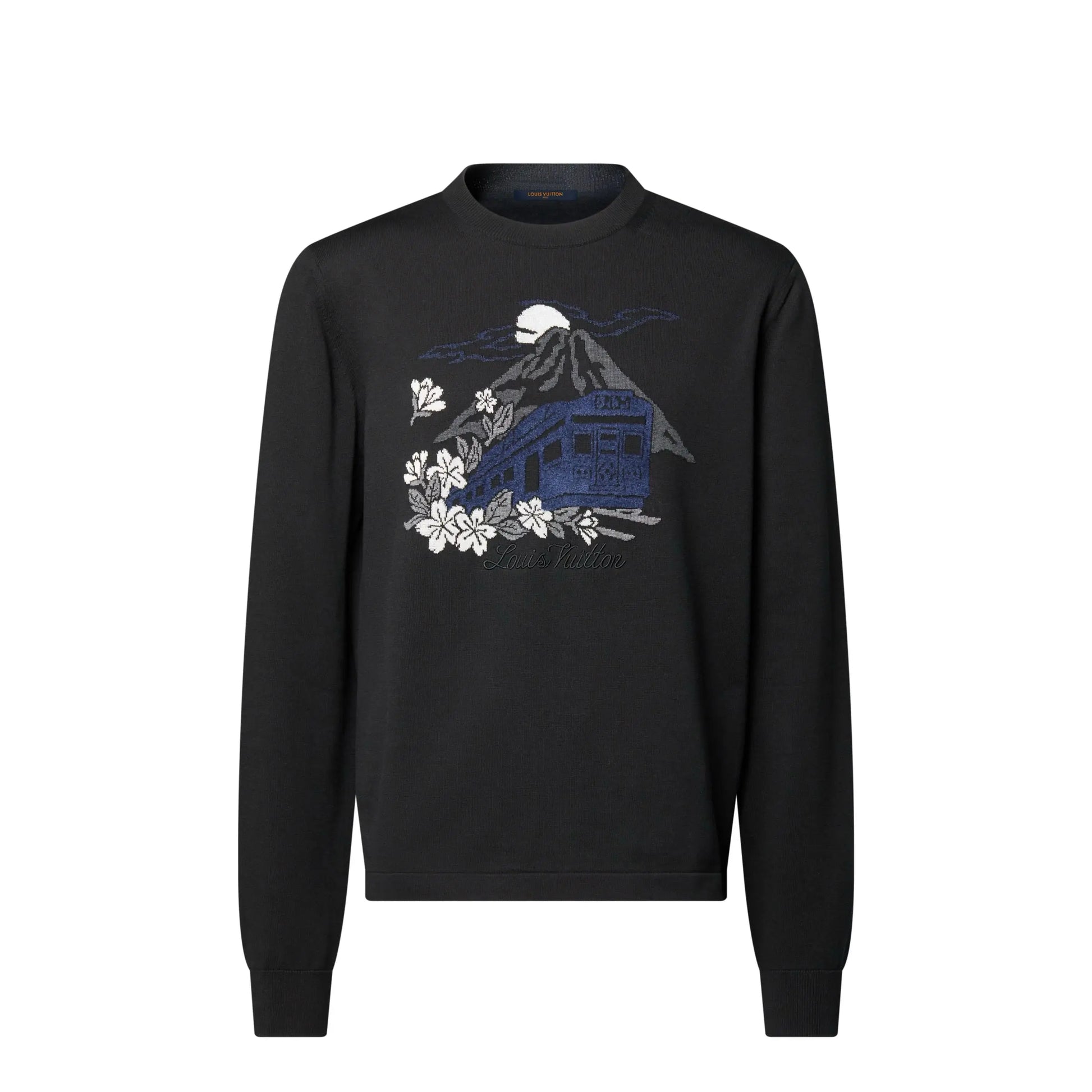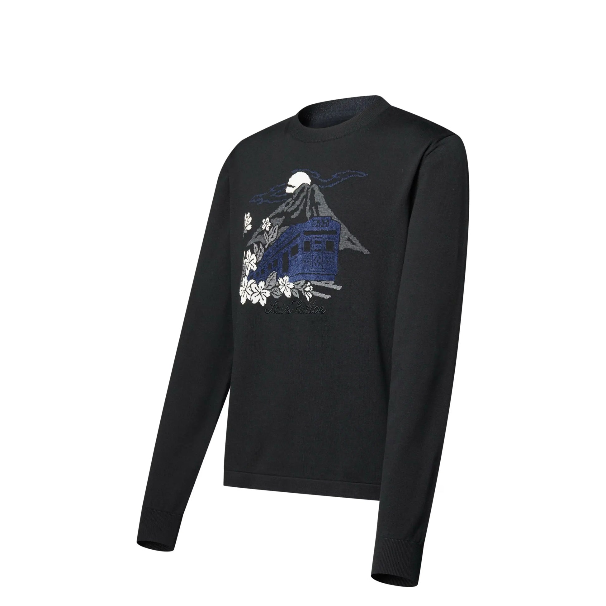 Le modèle se distingue par un motif graphique fort : le LV Japan Sketch, issu du défilé Automne-Hiver 2025. Ce motif est réalisé avec soin en intarsia et broderie à l'avant, créant une signature visuelle puissante et sophistiquée. L'ensemble est complété par le col et les bords finement côtelés.