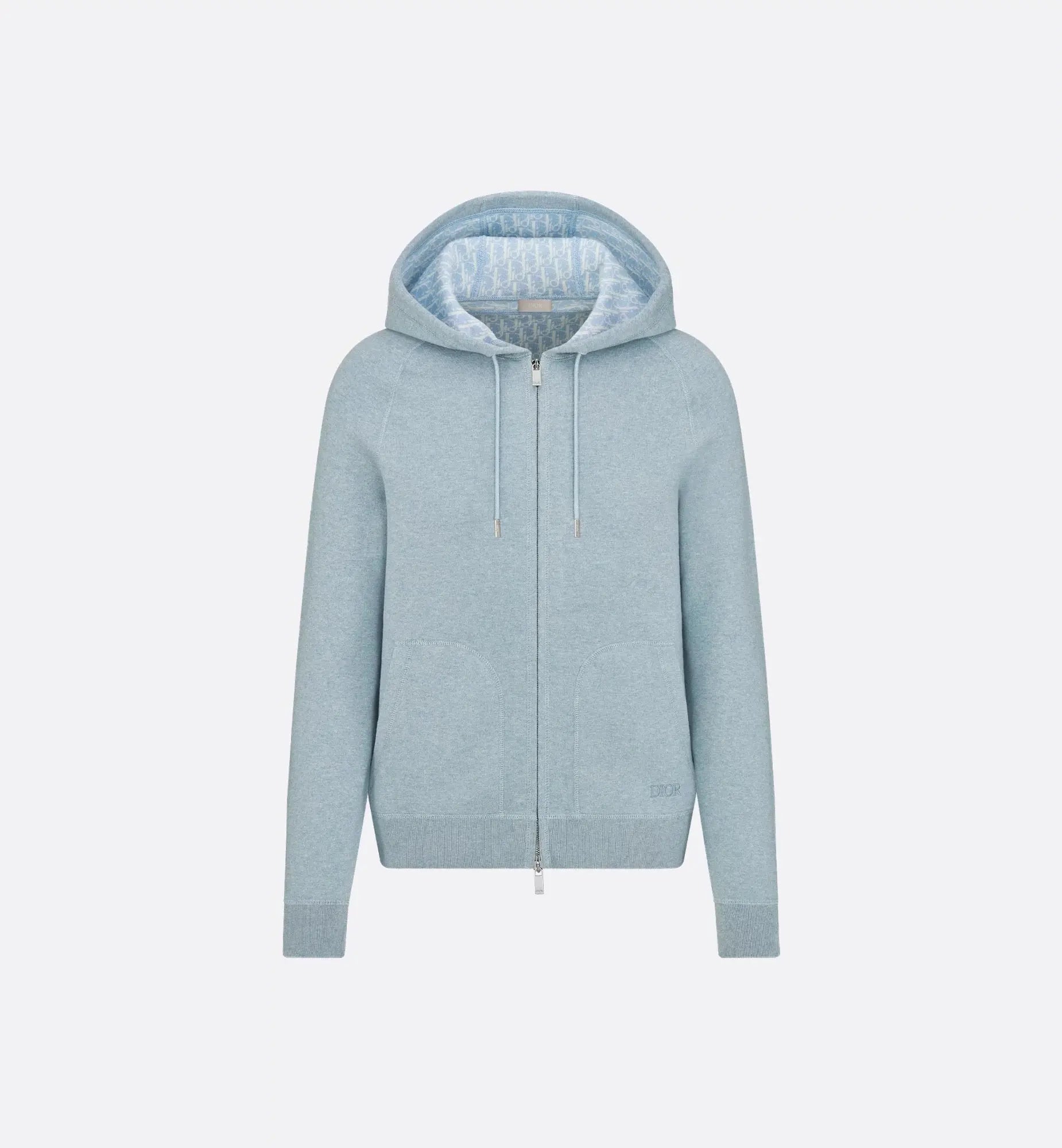 La veste se distingue par une broderie Dior à l'avant et un intérieur en jacquard Dior Oblique emblématique qui habille subtilement la pièce. Elle est dotée d'une capuche avec cordon de serrage aux embouts en métal gravés, de manches raglan et de poches kangourou pratiques. Le pantalon coordonné, rehaussé d'une broderie ton sur ton, dispose d'une taille et de chevilles côtelées ainsi que de poches latérales zippées pour une silhouette moderne et structurée.