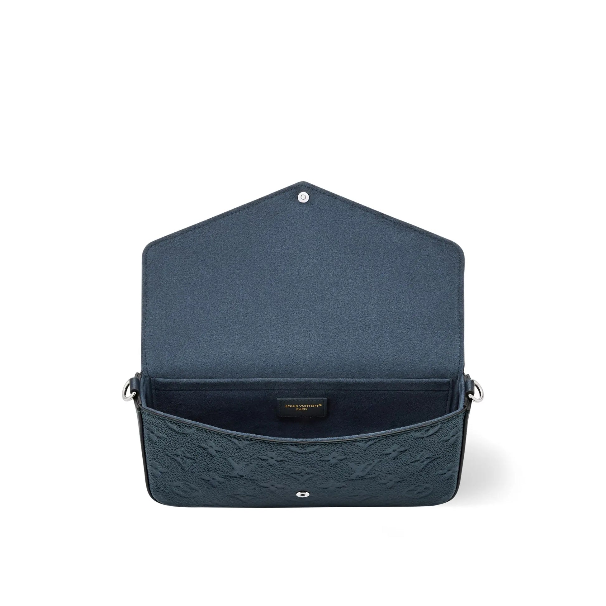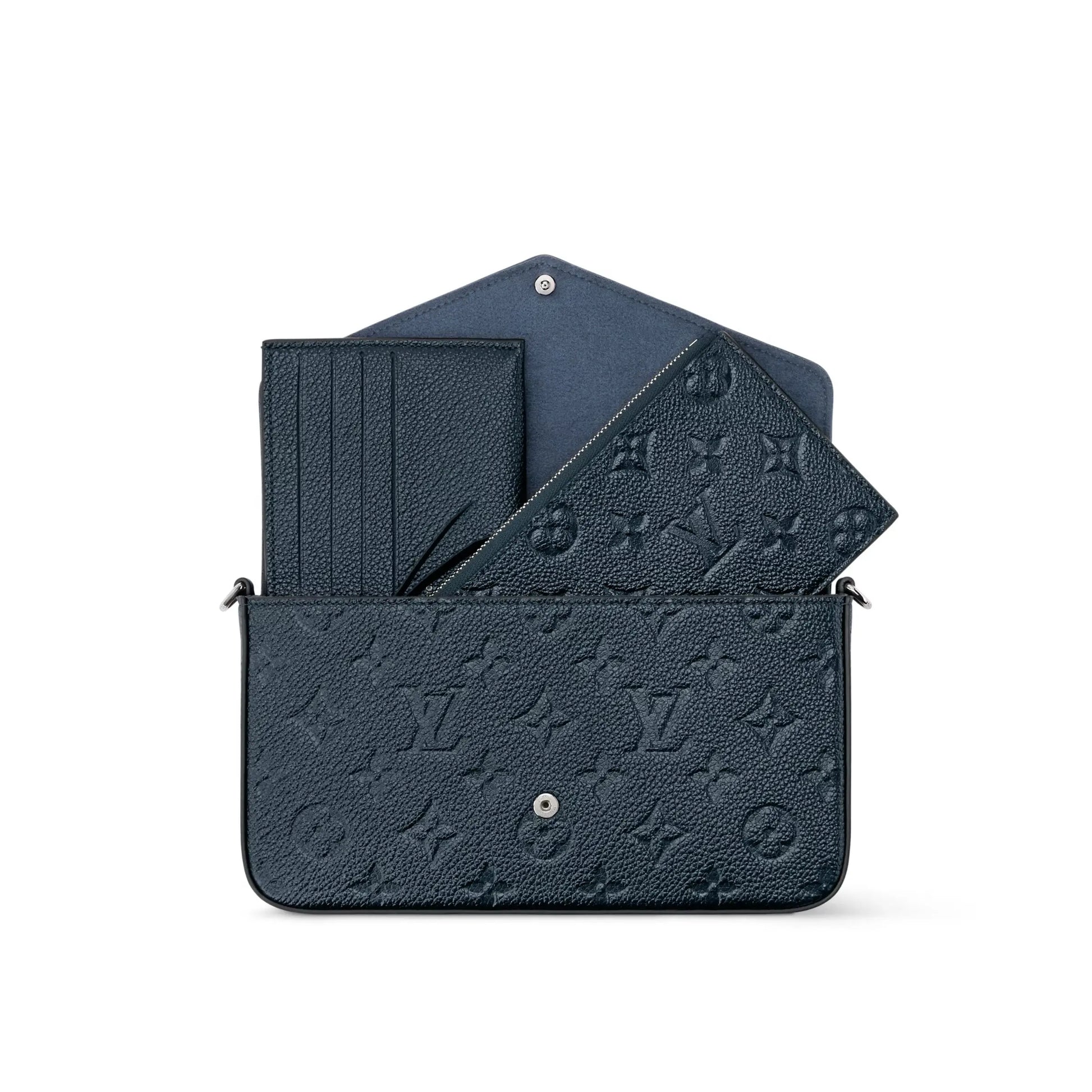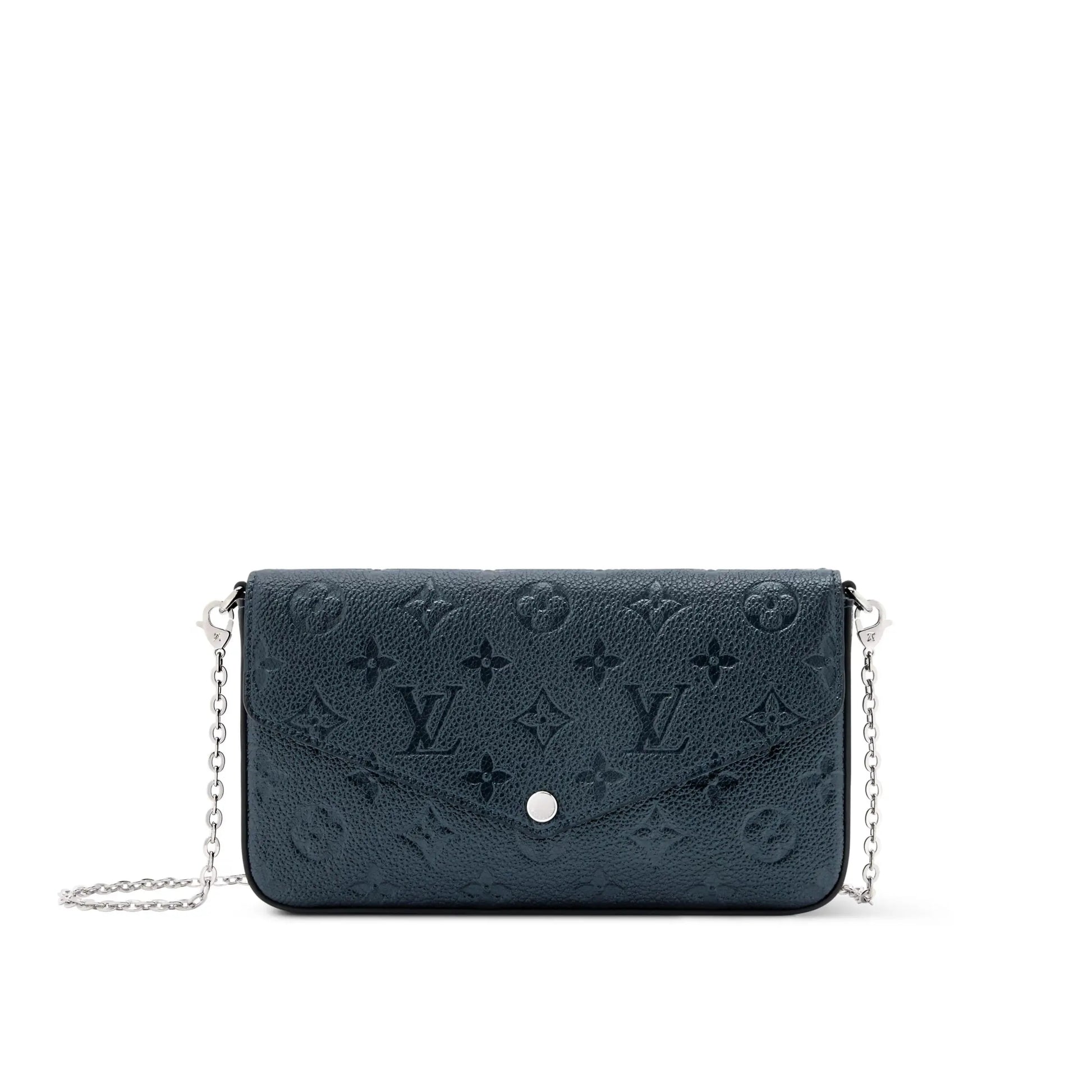 Cette édition raffinée de la pochette Félicie revisite le cuir Monogram Empreinte dans une teinte Shimmery Ink lumineuse. Compacte et fonctionnelle, elle intègre deux poches amovibles : une poche zippée pour les petits essentiels et une poche plate munie de huit fentes pour cartes. Sa chaîne argentée détachable permet de la porter croisée, à l’épaule ou à la main selon l’occasion.