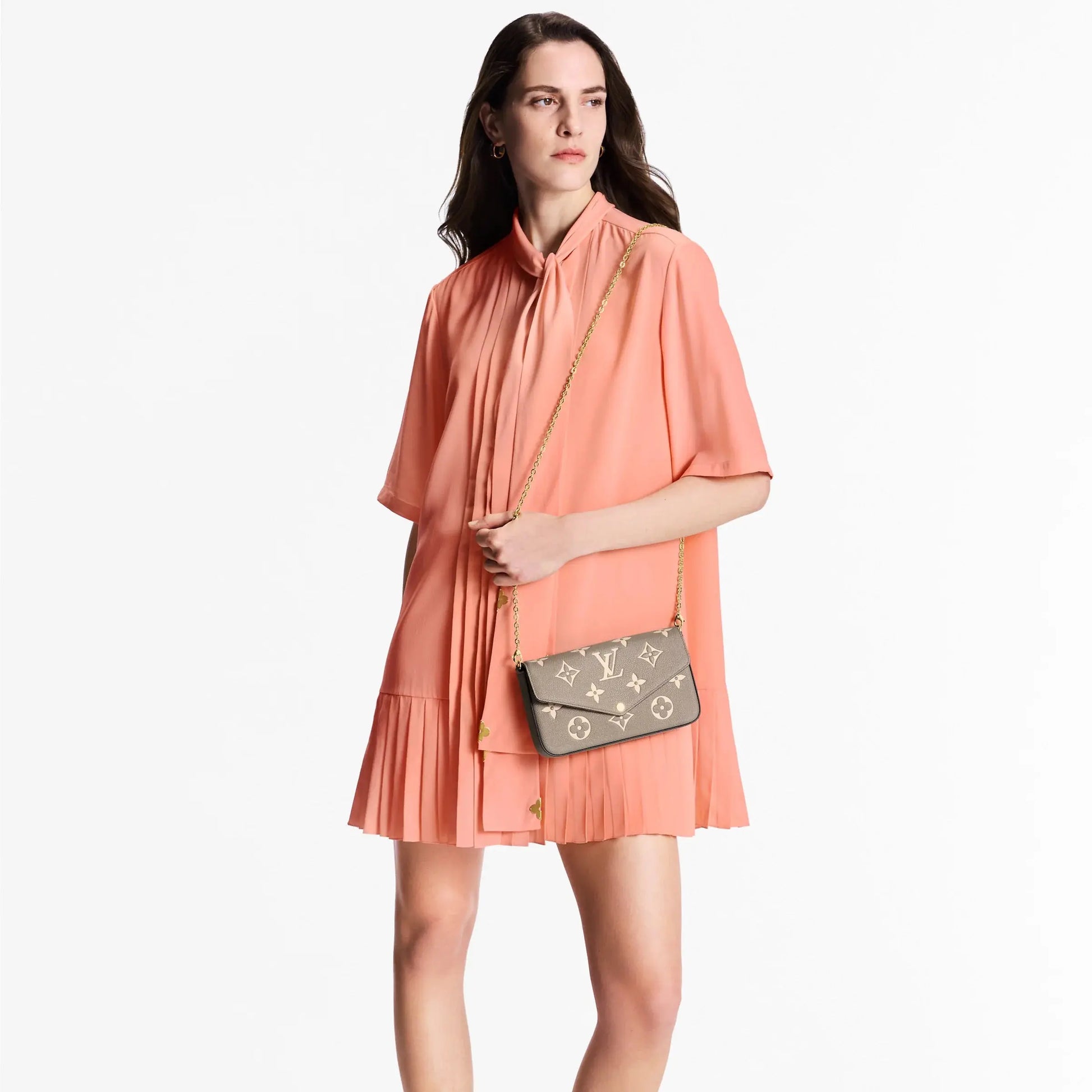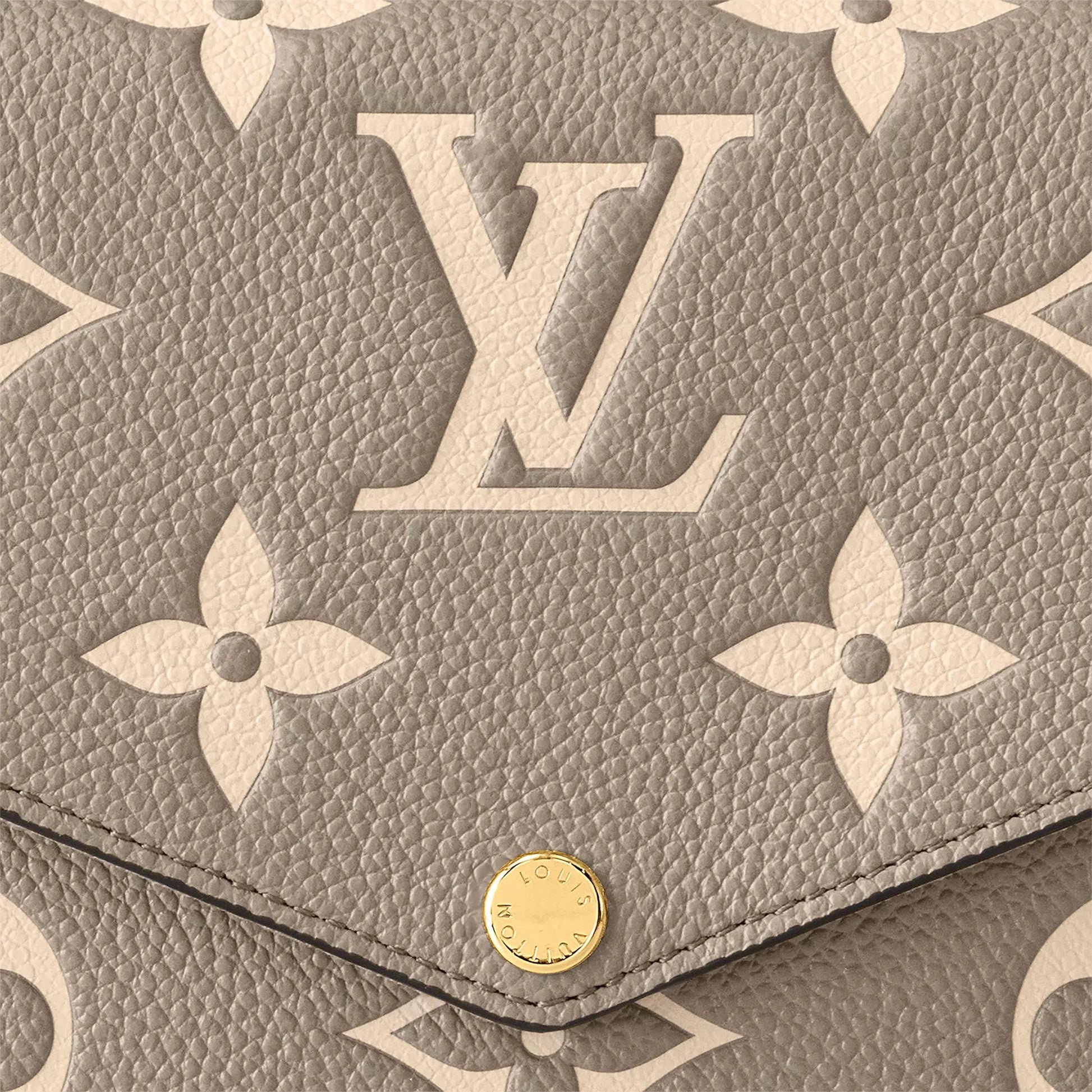 Cette pochette Félicie est réalisée en cuir Monogram Empreinte souple embossé du célèbre motif Louis Vuitton. Sa palette bicolore Gris Tourterelle et Blanc crème apporte une élégance douce et intemporelle. Pratique au quotidien, elle s’accompagne de deux poches amovibles et d’une chaîne détachable permettant un porté épaule, croisé ou à la main.