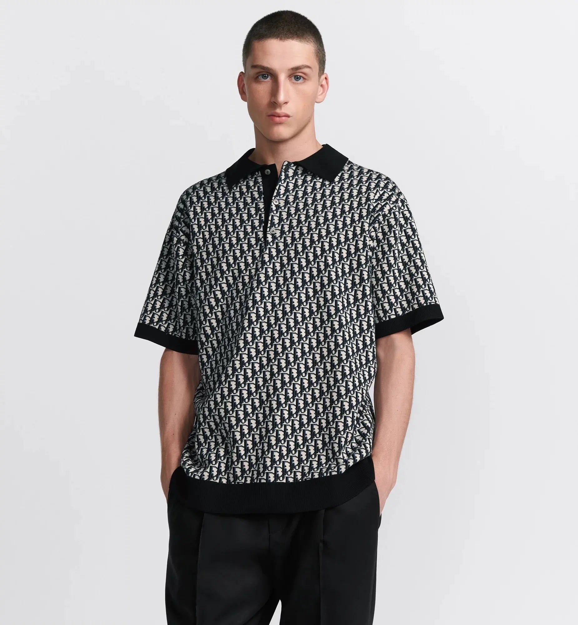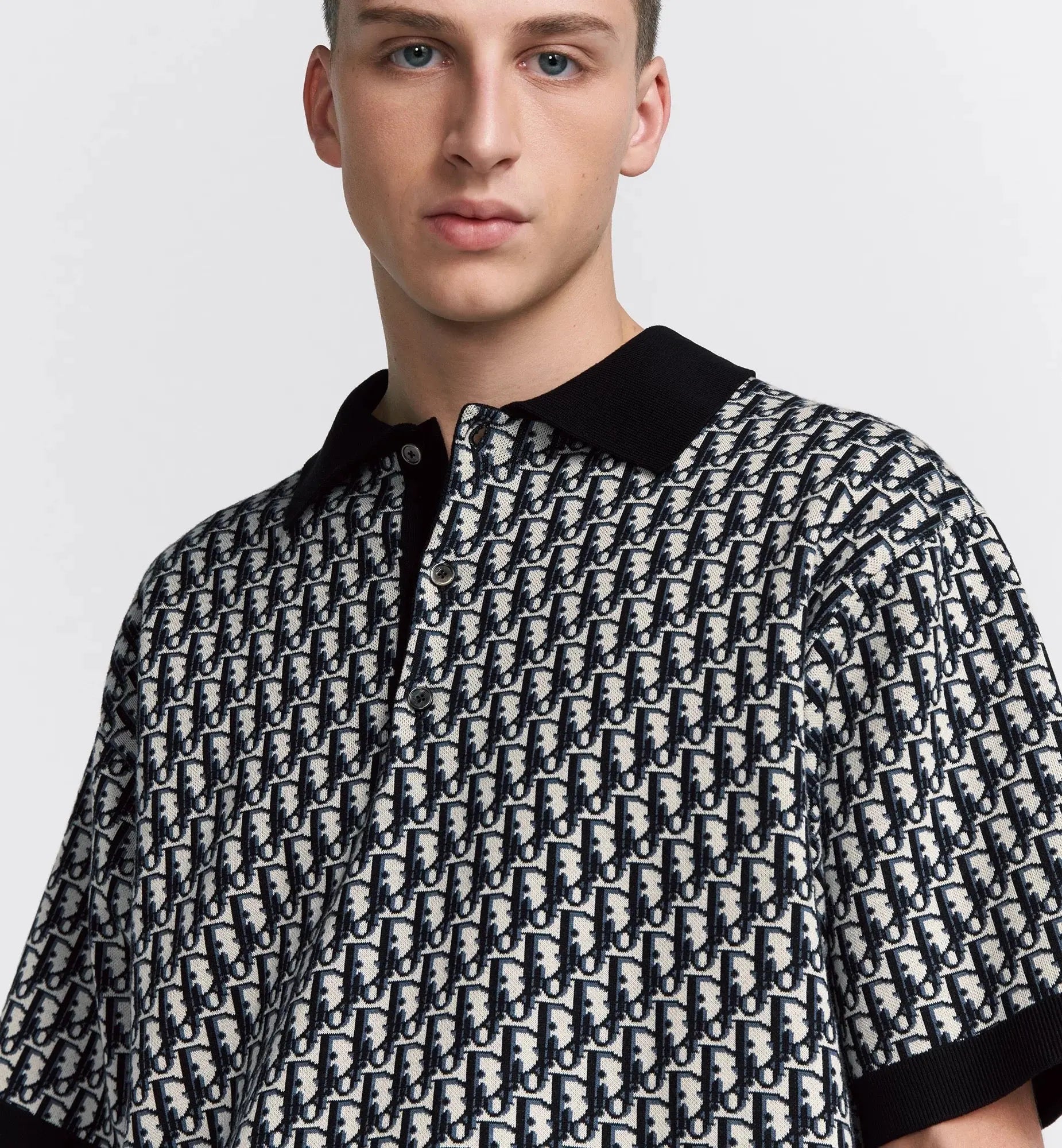 Le polo en maille légère de coton (jauge 18) est une pièce emblématique, mettant à l'honneur l'iconique motif Dior Oblique de la Maison. Confectionné en jacquard de coton dans un mélange de couleurs beige, bleu et noir, il rehaussera toutes vos tenues d'une touche graphique et sophistiquée.