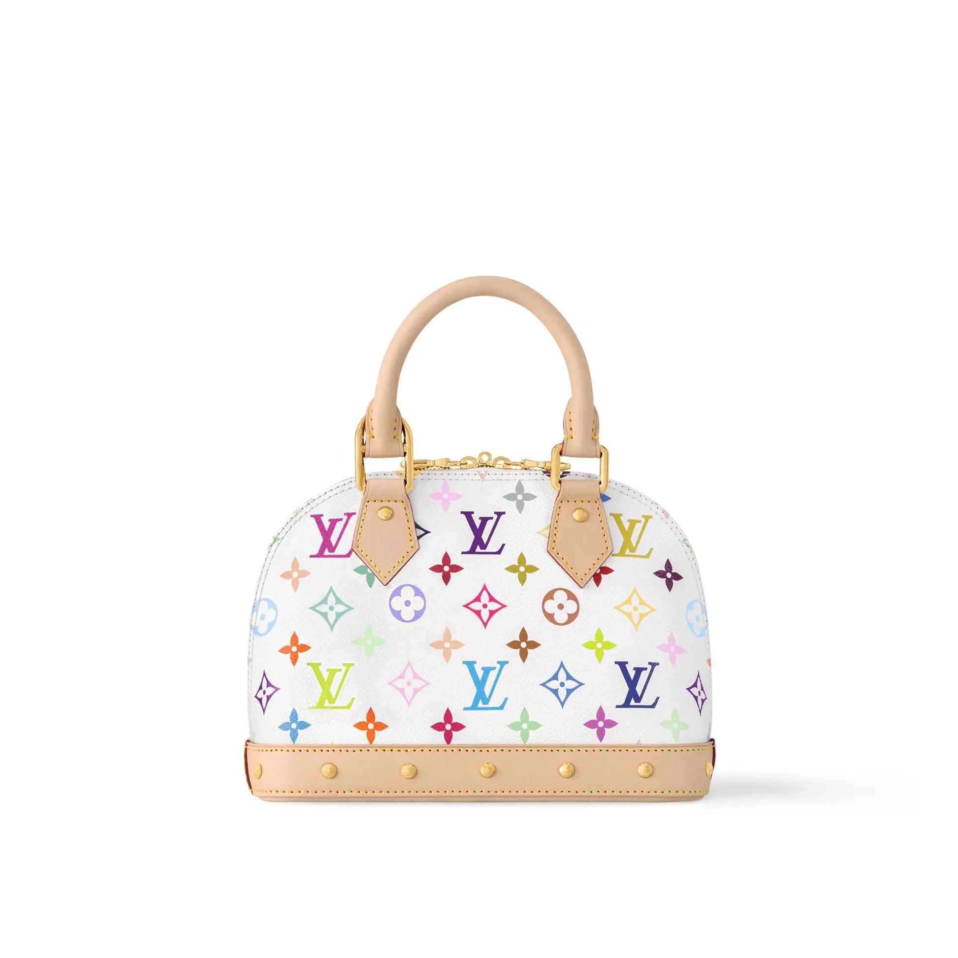Inspiré d’un modèle Art déco emblématique des années 30, le sac Alma BB se décline ici dans une version festive issue de la collection Louis Vuitton x Murakami. La toile Monogram multicolore, revisitée dans la palette ludique de l’artiste japonais, apporte une touche graphique et joyeuse à cette silhouette iconique. Les finitions en cuir de vache naturel soulignent les poignées Toron, la base du sac, la bandoulière amovible ainsi que la cloche-clé exclusive LV x TM, signatures du savoir-faire de la Maison. Compact et expressif, ce modèle est idéal pour dynamiser une tenue au quotidien.