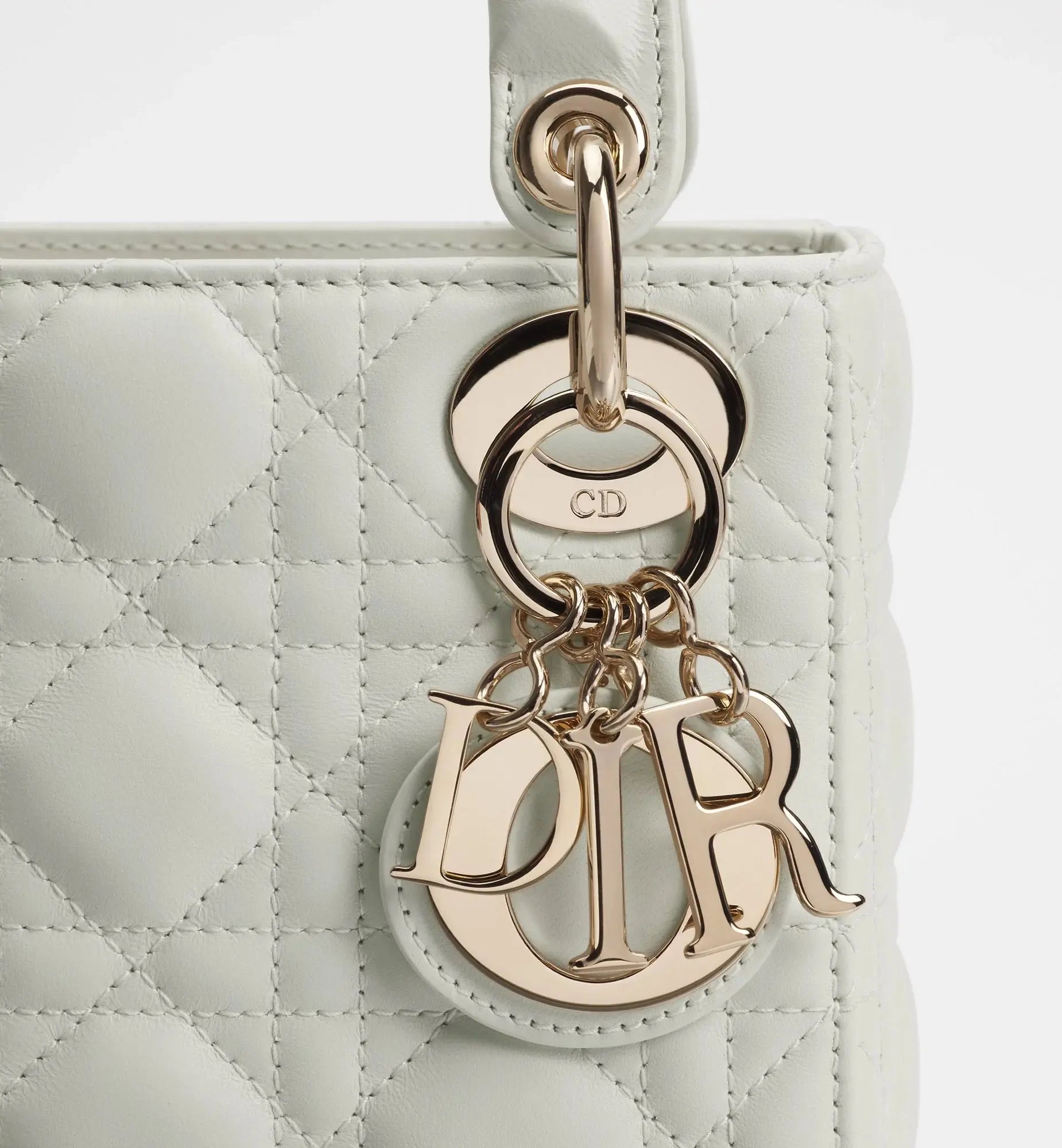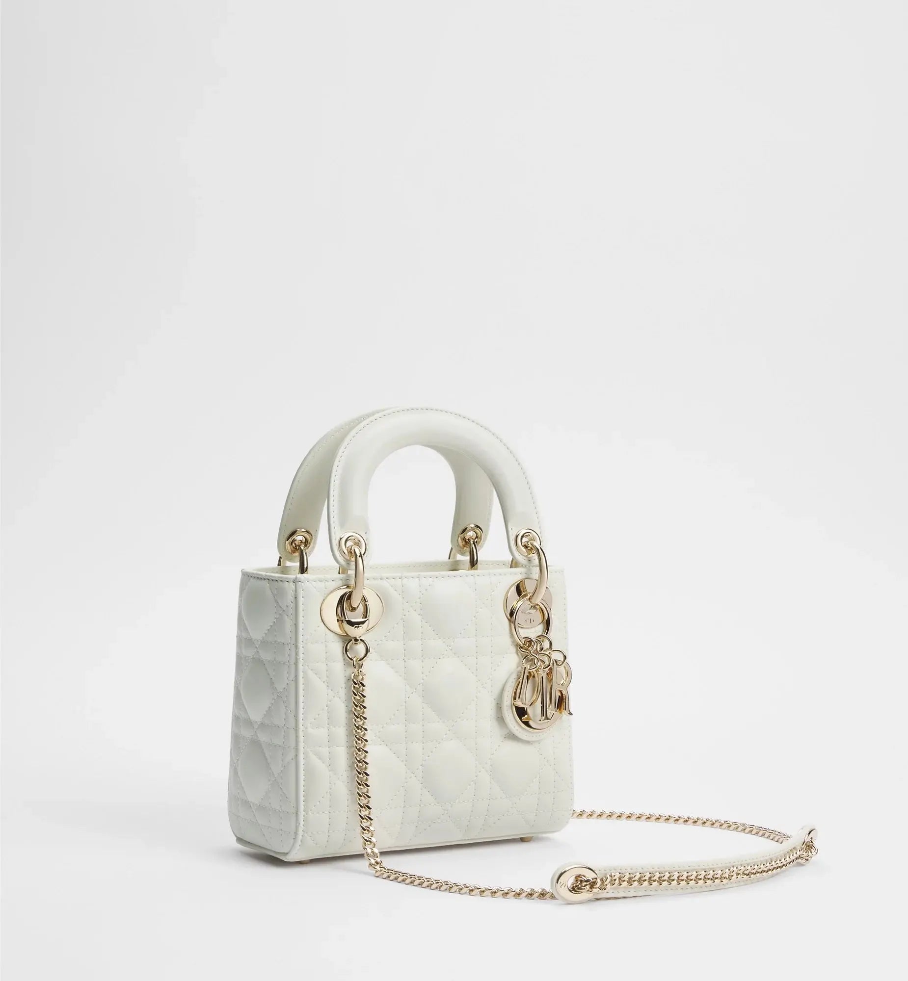 Véritable symbole de l’élégance Dior, le sac Lady Dior Mini incarne un raffinement intemporel. Confectionné en cuir d’agneau couleur latte, il se distingue par son matelassage Cannage iconique, immédiatement reconnaissable. Les charms D.I.O.R. en métal doré pâle viennent illuminer la silhouette avec subtilité. Doté d’une chaîne amovible, ce modèle se porte à la main ou en crossbody et s’impose comme le compagnon idéal des tenues de soirée.