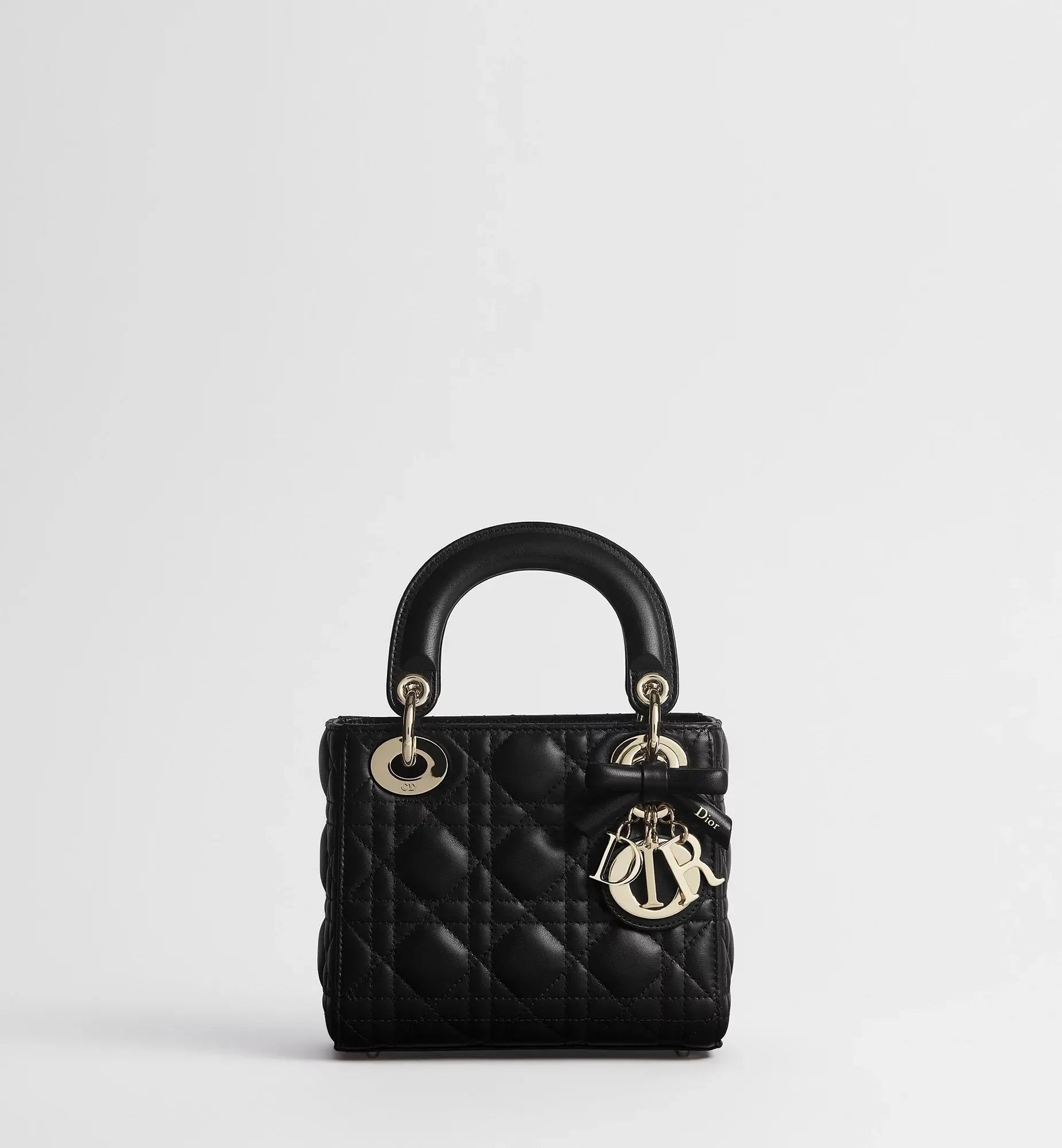 Le sac Lady Dior Mini se réinvente sous l’élan créatif de Jonathan Anderson avec une interprétation élégante et intemporelle. Les charms D.I.O.R. en métal doré pâle sont sublimés par un nœud en cuir détachable noir, apportant une touche sobre et raffinée. Doté d’une chaîne amovible, ce modèle iconique se porte à la main pour une allure chic ou en crossbody pour un style résolument contemporain.