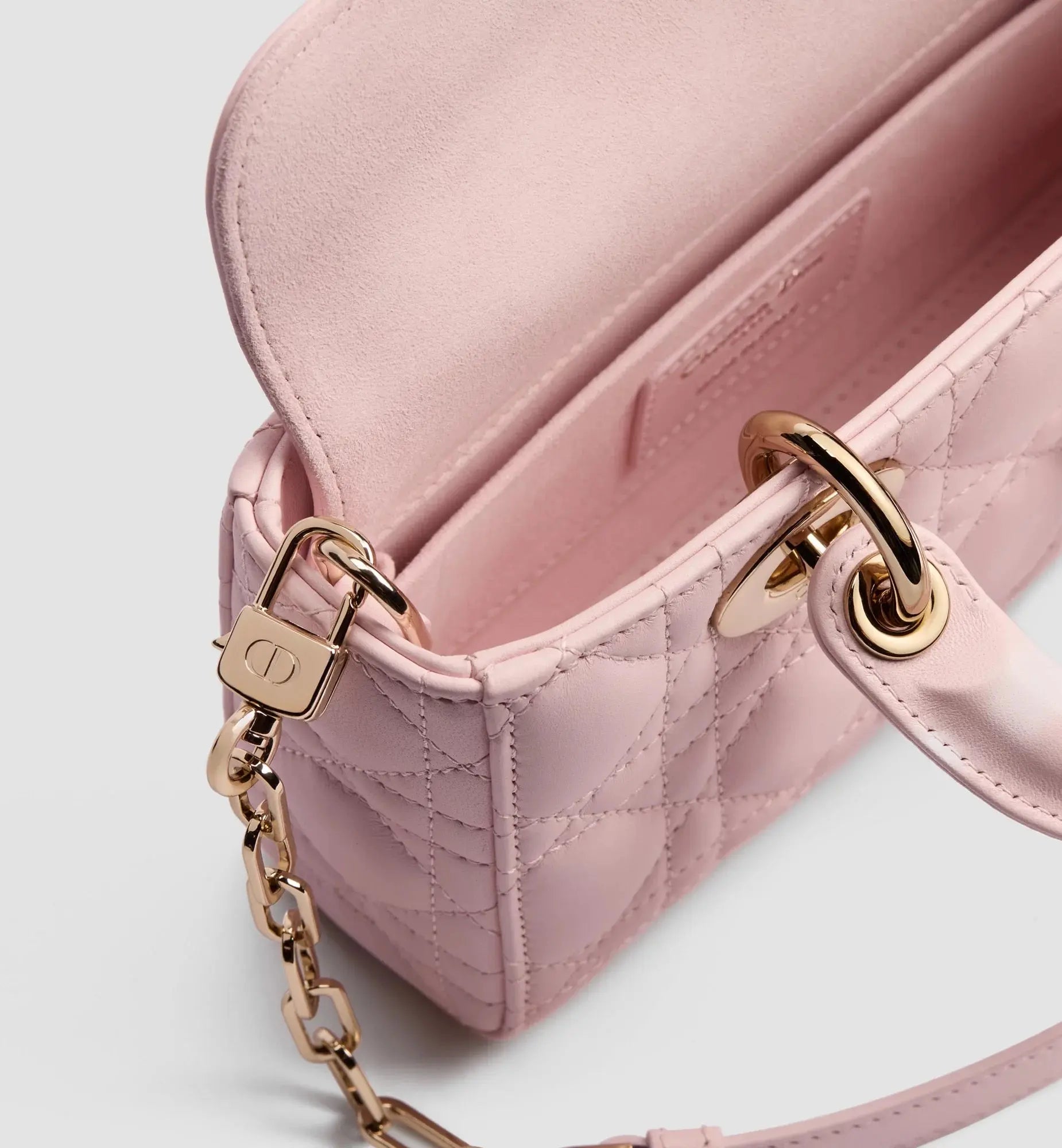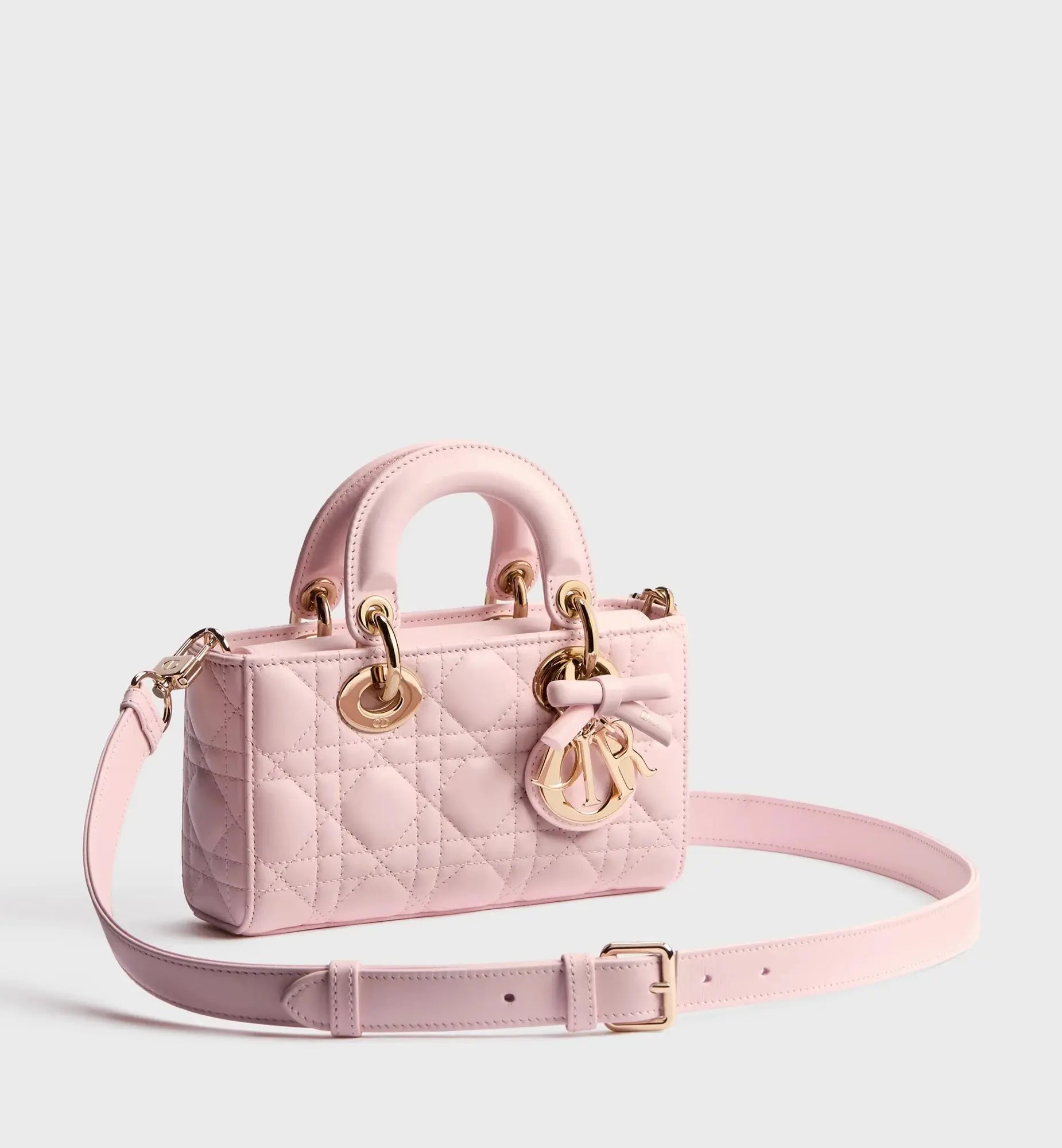 Le sac Lady D-Joy incarne parfaitement la vision d’élégance et de beauté de la Maison Dior. Raffiné et féminin, ce modèle intemporel rend hommage au design épuré de l’iconique ligne Lady Dior. Confectionné en cuir d’agneau rose Soupir à coutures Cannage, il est sublimé par des charms D.I.O.R. en métal doré pâle, rehaussés d’un nœud en cuir détachable qui apporte une touche délicate et contemporaine. Grâce à sa chaîne amovible et à sa bandoulière en cuir ajustable et amovible, le Lady D-Joy Mini se porte à la main, à l’épaule ou en crossbody, et s’impose comme un compagnon élégant du quotidien.