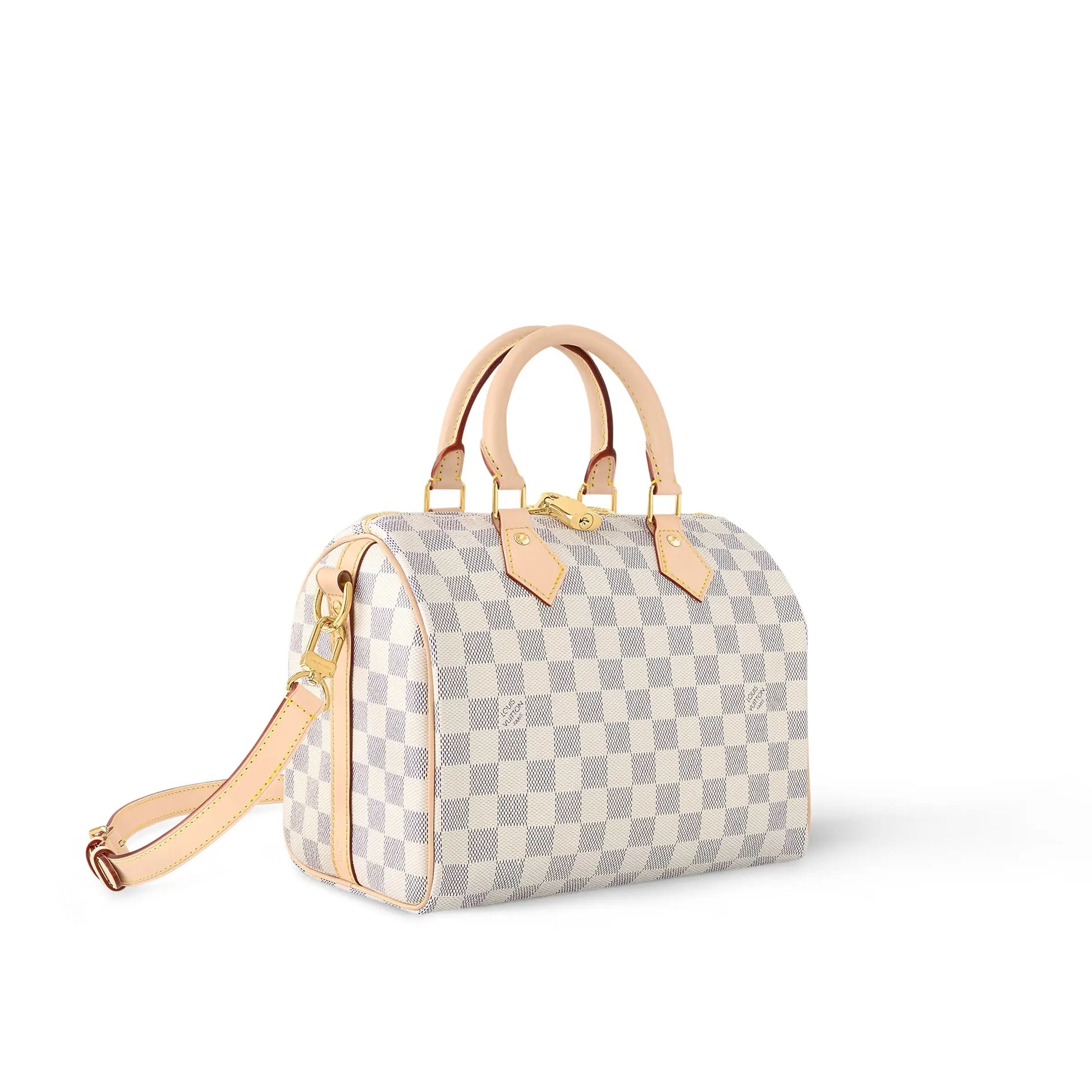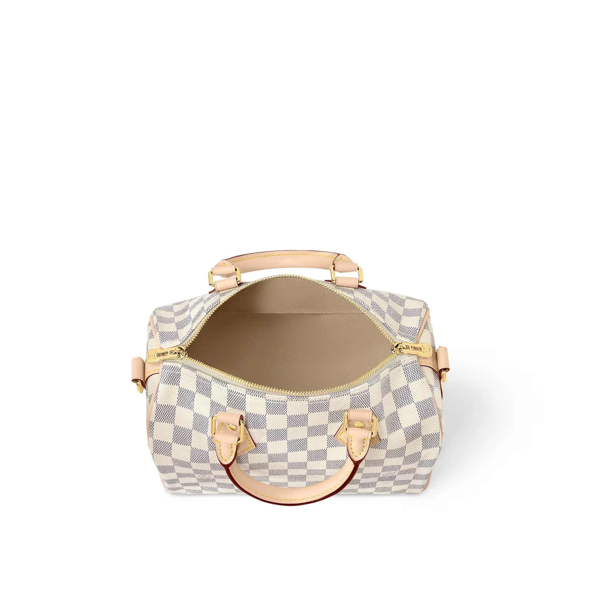 Confectionné en toile Damier Ébène, ce Speedy Bandoulière 25 s’impose comme un classique urbain idéal pour un usage quotidien. Inspiré du modèle conçu pour les voyageurs des années 30, il reprend tous les éléments emblématiques de la ligne : poignées roulées en cuir, cadenas gravé et silhouette reconnaissable entre toutes. Sa bandoulière amovible permet un porté polyvalent, de l’épaule au crossbody.