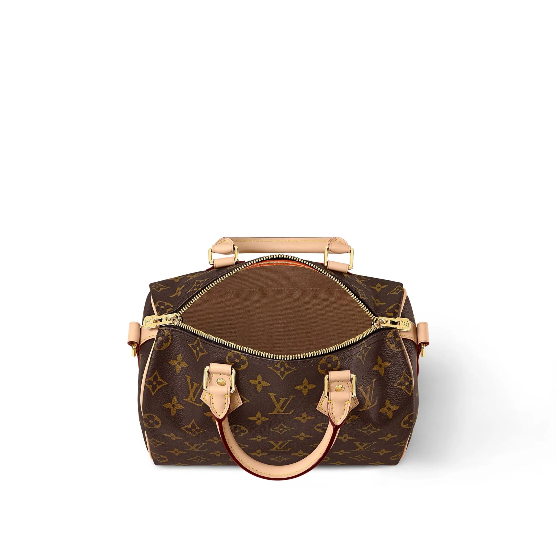 Icône du quotidien, le Speedy Bandoulière 25 s’habille ici de la toile Monogram classique. Conçu à l’origine pour les voyageurs des années 30, il conserve sa silhouette reconnaissable, ses poignées roulées en cuir naturel et son cadenas gravé. Sa taille plus généreuse en fait un compagnon pratique, capable d’accueillir confortablement les essentiels de la journée.