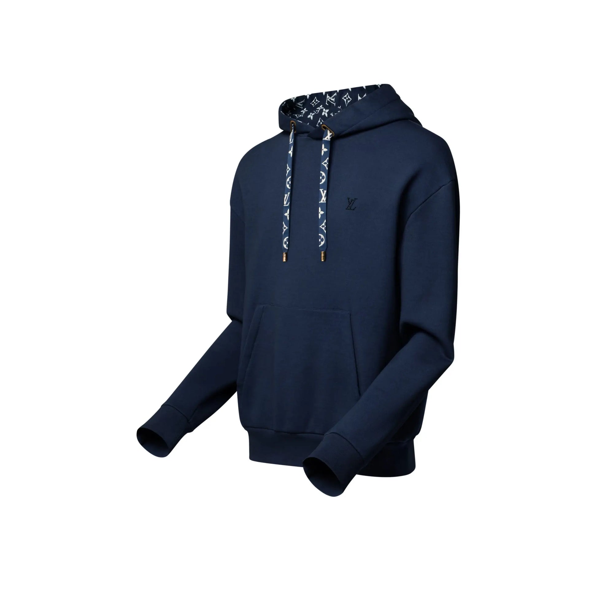 Le modèle se distingue par des détails Monogram subtils et sophistiqués : le motif Monogram blanc est imprimé à l'intérieur de la capuche ainsi que sur les cordons façon ruban. Les œillets et les embouts dorés en métal ajoutent une touche luxueuse et sophistiquée à l'ensemble.