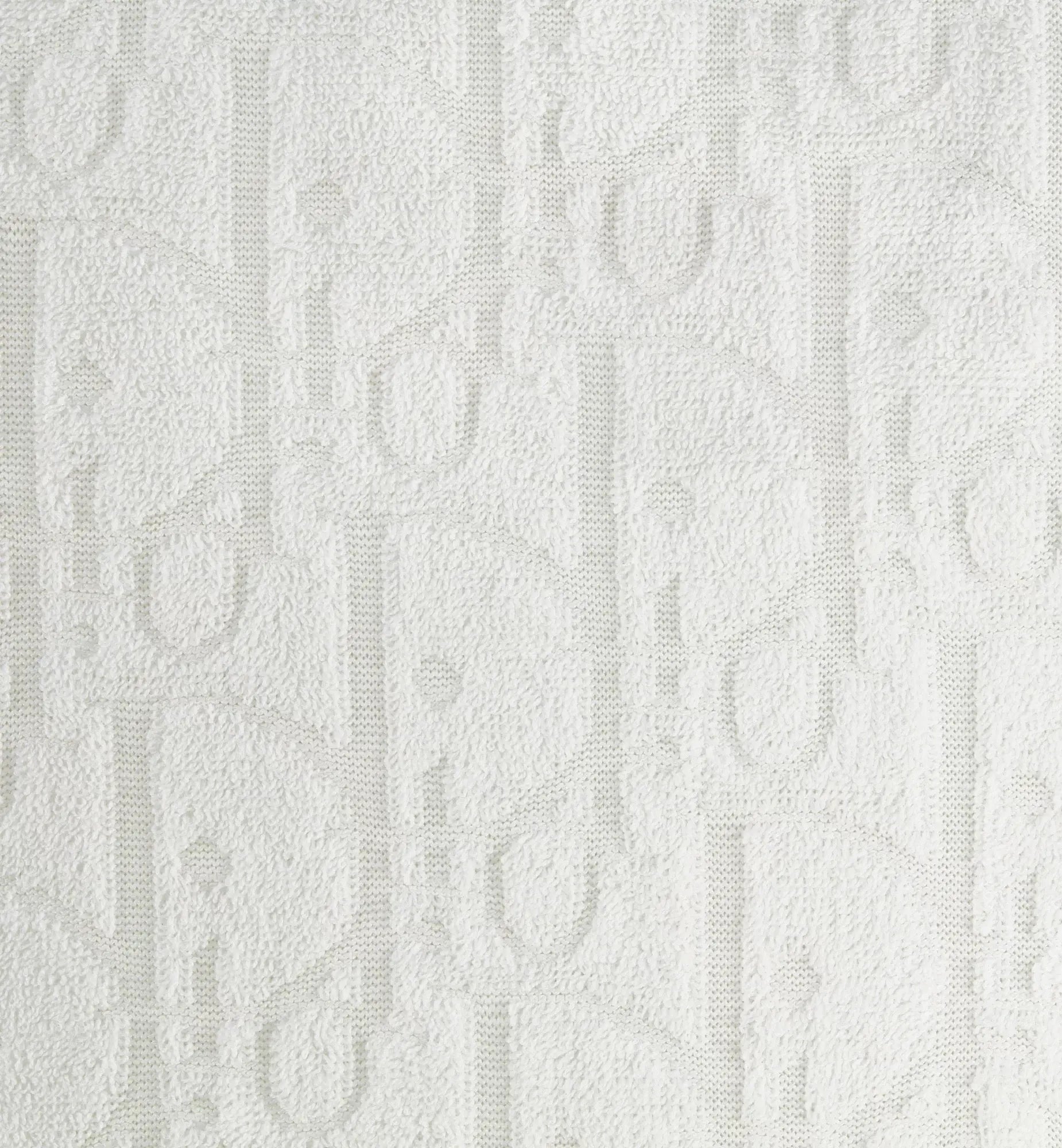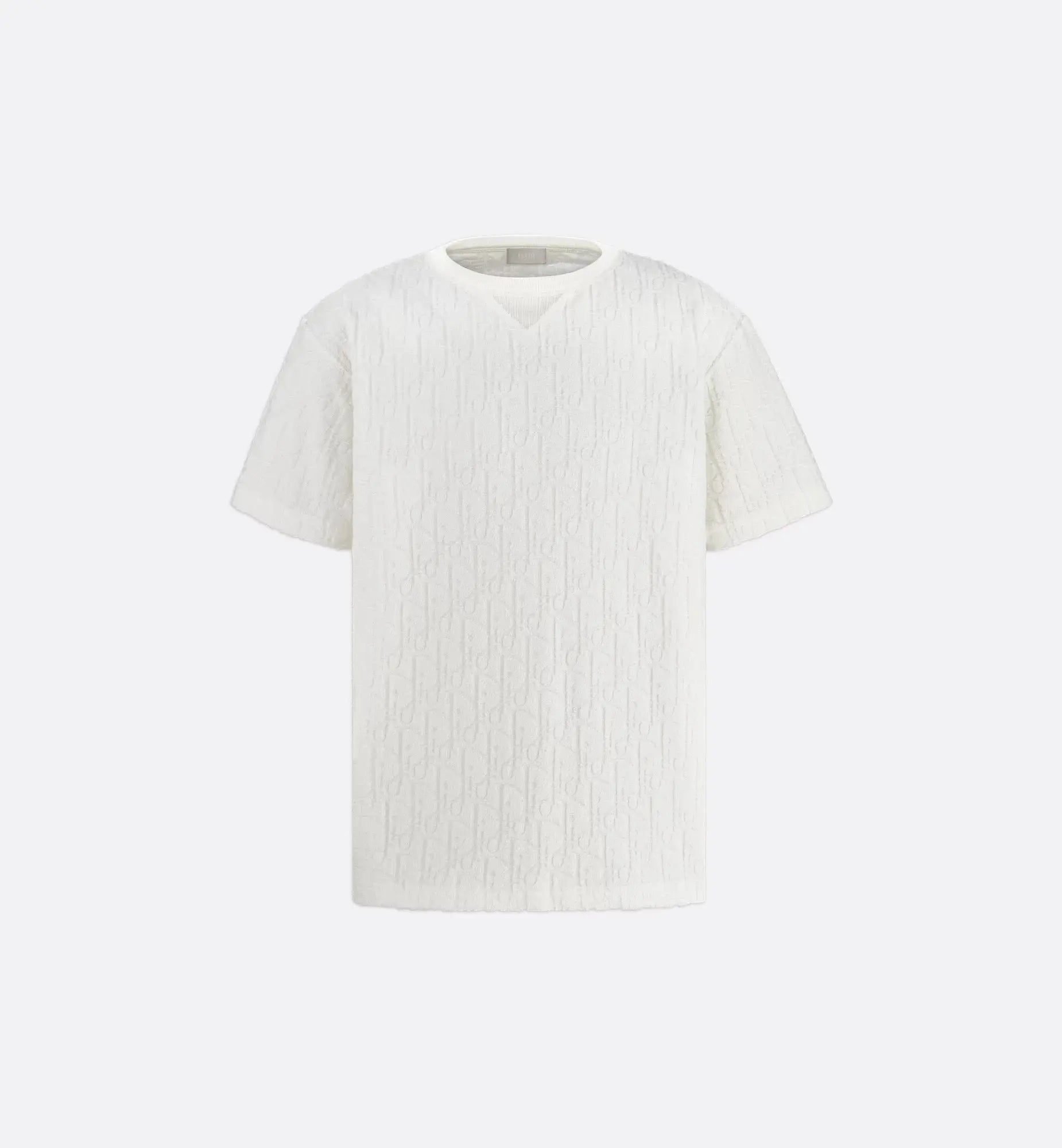 Le t-shirt en coton éponge blanc cassé est une pièce à la fois confortable et emblématique. Il met à l'honneur le motif Dior Oblique emblématique en jacquard ton sur ton sur l'ensemble du vêtement, pour une signature discrète et sophistiquée.