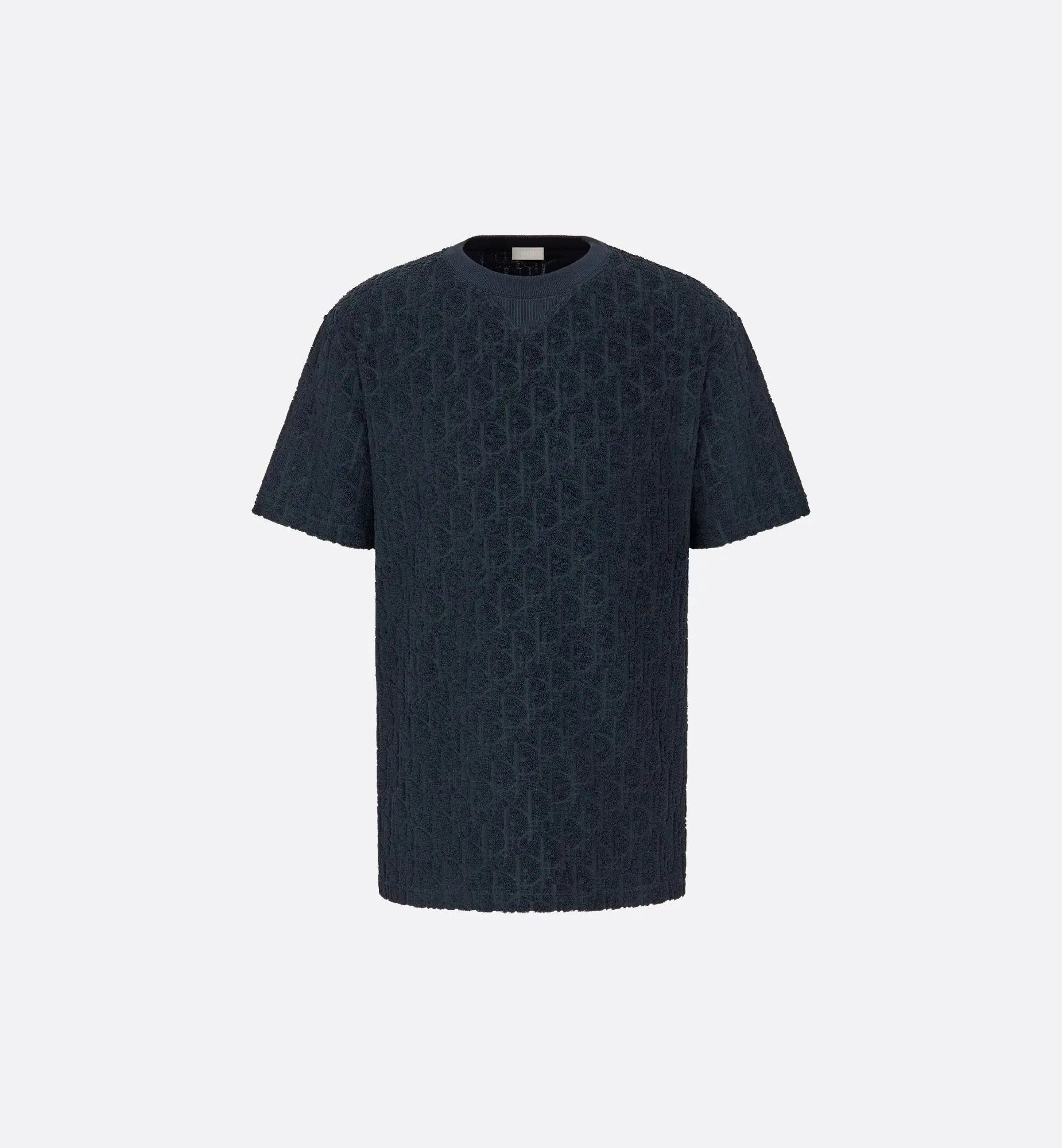 t-shirt en coton éponge bleu marine est une pièce à la fois confortable et emblématique. Il met à l'honneur le motif Dior Oblique emblématique en jacquard ton sur ton sur l'ensemble du vêtement, pour une signature discrète et sophistiquée.